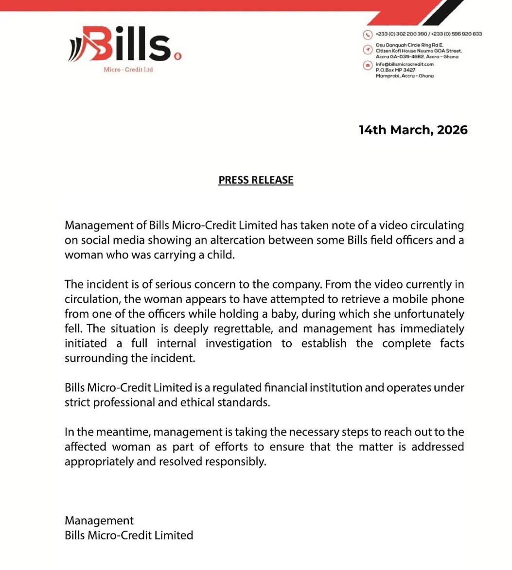 Management of Bills Micro-Credit Limited has launched an internal investigation following the circulation of a viral video on social media showing a confrontation between some of its field officers and a woman carrying a child.