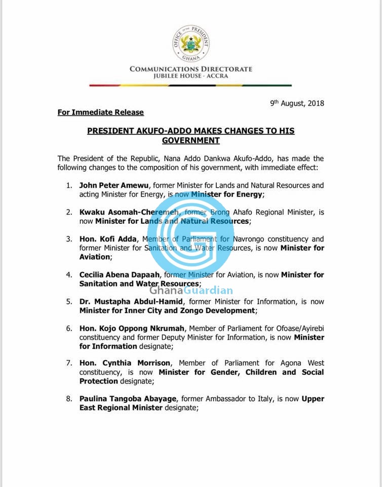 President Nana Addo Dankwa Akufo-Addo has made the first major changes in his ministerial appointments by moving Dr. Alhaji Mustapha to the Ministry of Inner-City & Zongo Development.