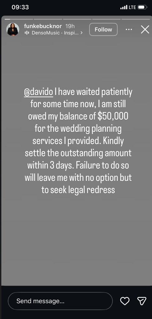 Nigerian Afrobeats superstar Davido has dismissed claims that he owes $50,000 to a wedding planning company, describing the allegation as “crazy.”