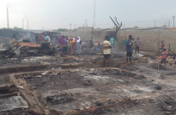 Dozens of residents and business owners are reeling from the aftermath of a devastating fire that tore through more than 100 wooden structures at the Tema Heavy Industrial Area late Wednesday night, June 18, 2025.