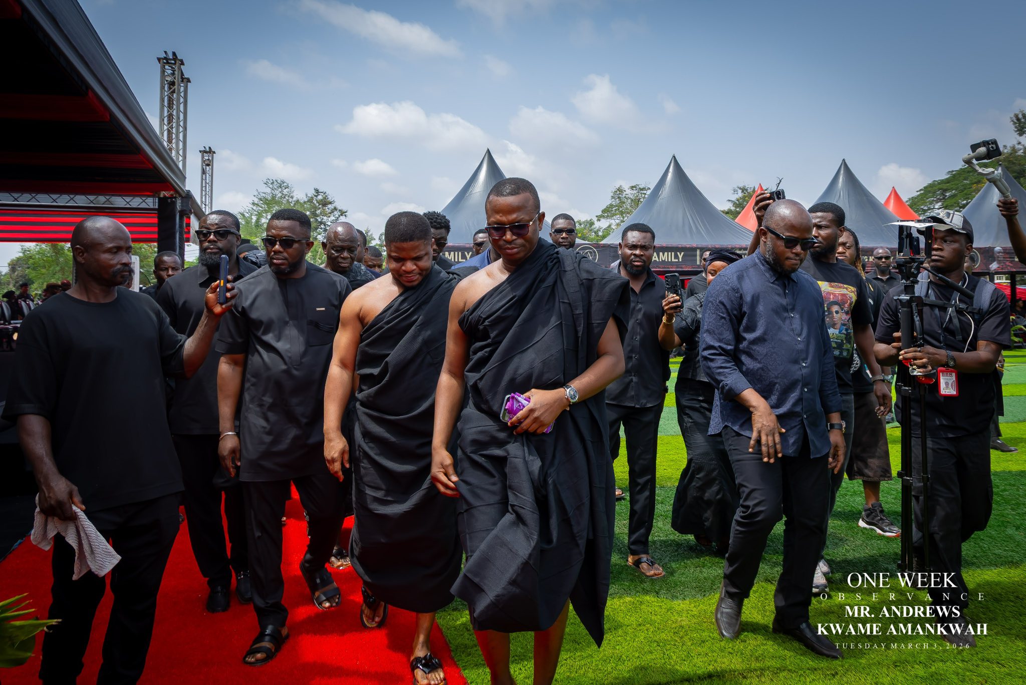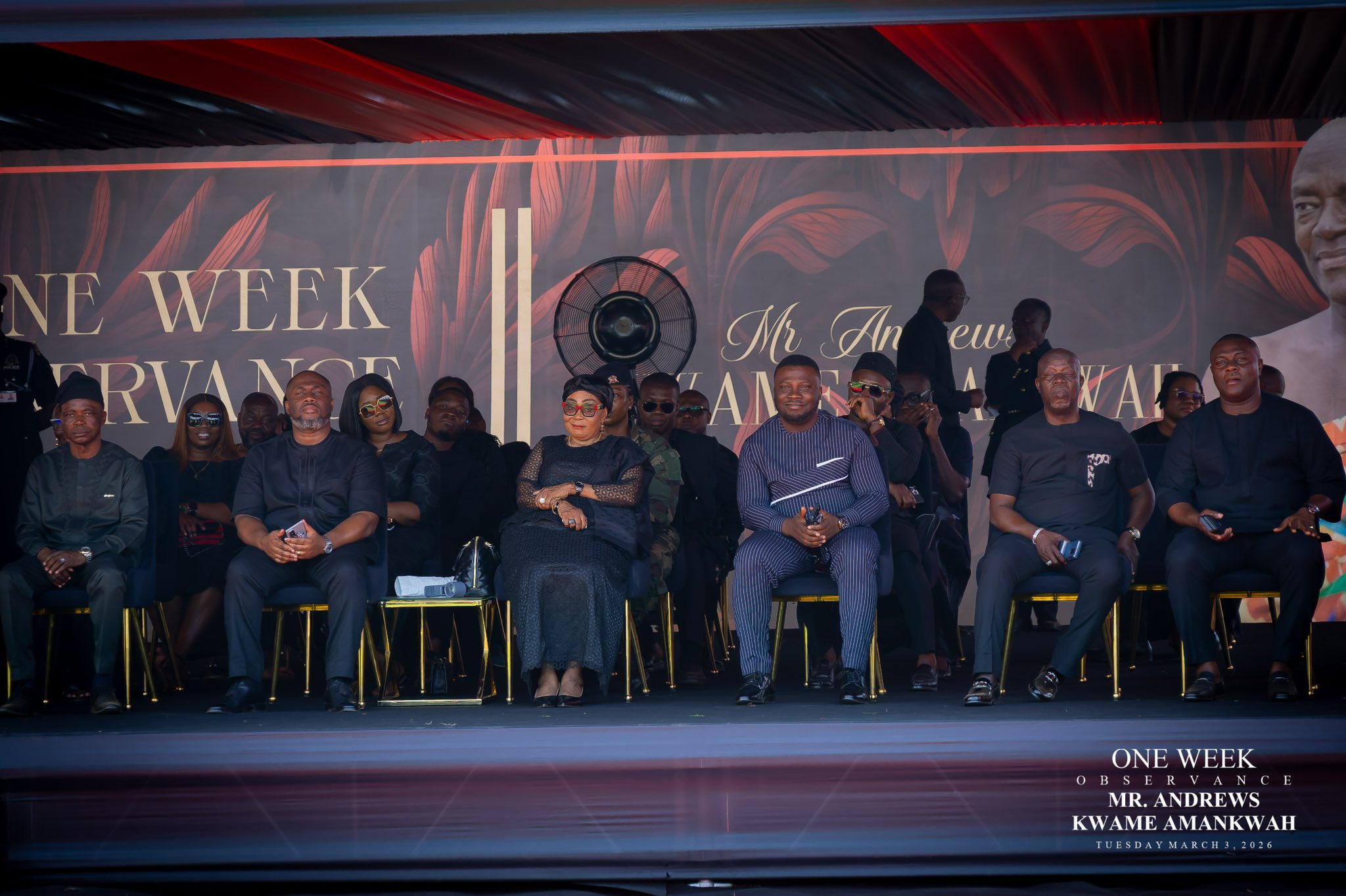 Prominent figures within the ruling National Democratic Congress (NDC) gathered to support party spokesperson Sammy Gyamfi during the one-week observance for his late father-in-law, Andrews Kwame Amankwah.