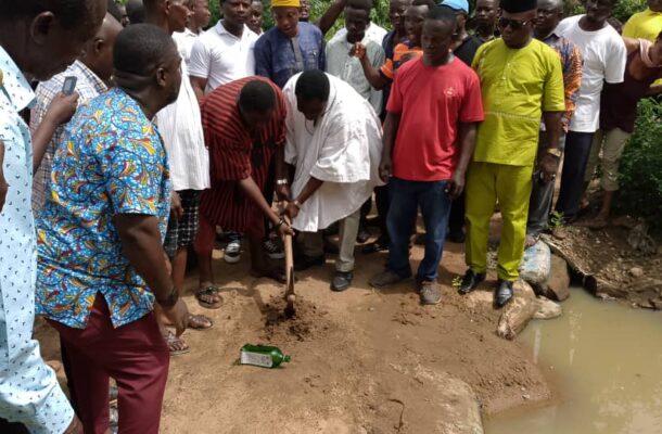 As part of the efforts to stop the flooding situation in the Suhum Constituency, the Member of Parliament for the area, Oboafo Kwadjo Asante has cut the sod to construct a drainage system and construction of a bridge for the residents of Gariba Zongo and Ali respectively.