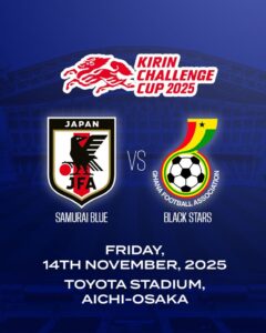 The Ghana Football Association (GFA) has confirmed that the Black Stars will take on Japan in the 2025 Kirin Challenge Cup, scheduled for Friday, November 14 at the Toyota Stadium in Aichi. The match marks the first leg of Ghana’s Asian tour, designed to sharpen the squad ahead of the 2026 FIFA World Cup.