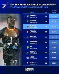The 28-year-old began 2026 in outstanding fashion, clinching the Goalkeeper of the Month award for January after a series of commanding displays for Negela Arsi FC. His fine form has shown no signs of slowing, with his performances in February placing him joint-top among the league’s 10 most valuable goalkeepers.