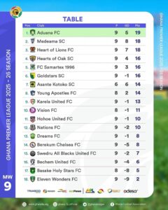 League Table – Heading into Matchday 10