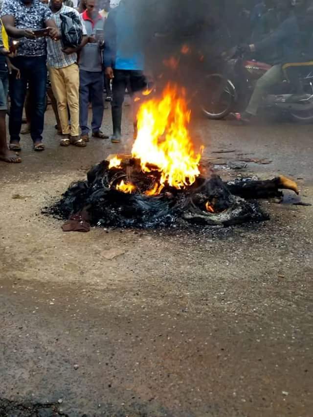 A suspected thief was on Thursday, set ablaze by irate youths in Ikom local Government Area of Cross River State, Nigeria.