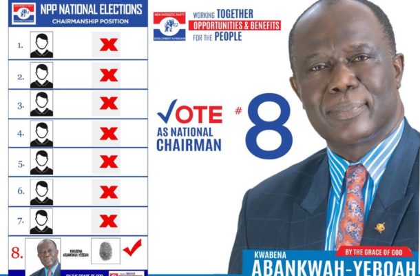 It is on the back of this that the treasurer, Mr. George Kwabena Abankwa-Yeboah who is seeking to become the chairman of the party has urged delegates to check him out on the number 8 slot of the ballot paper and vote for him.