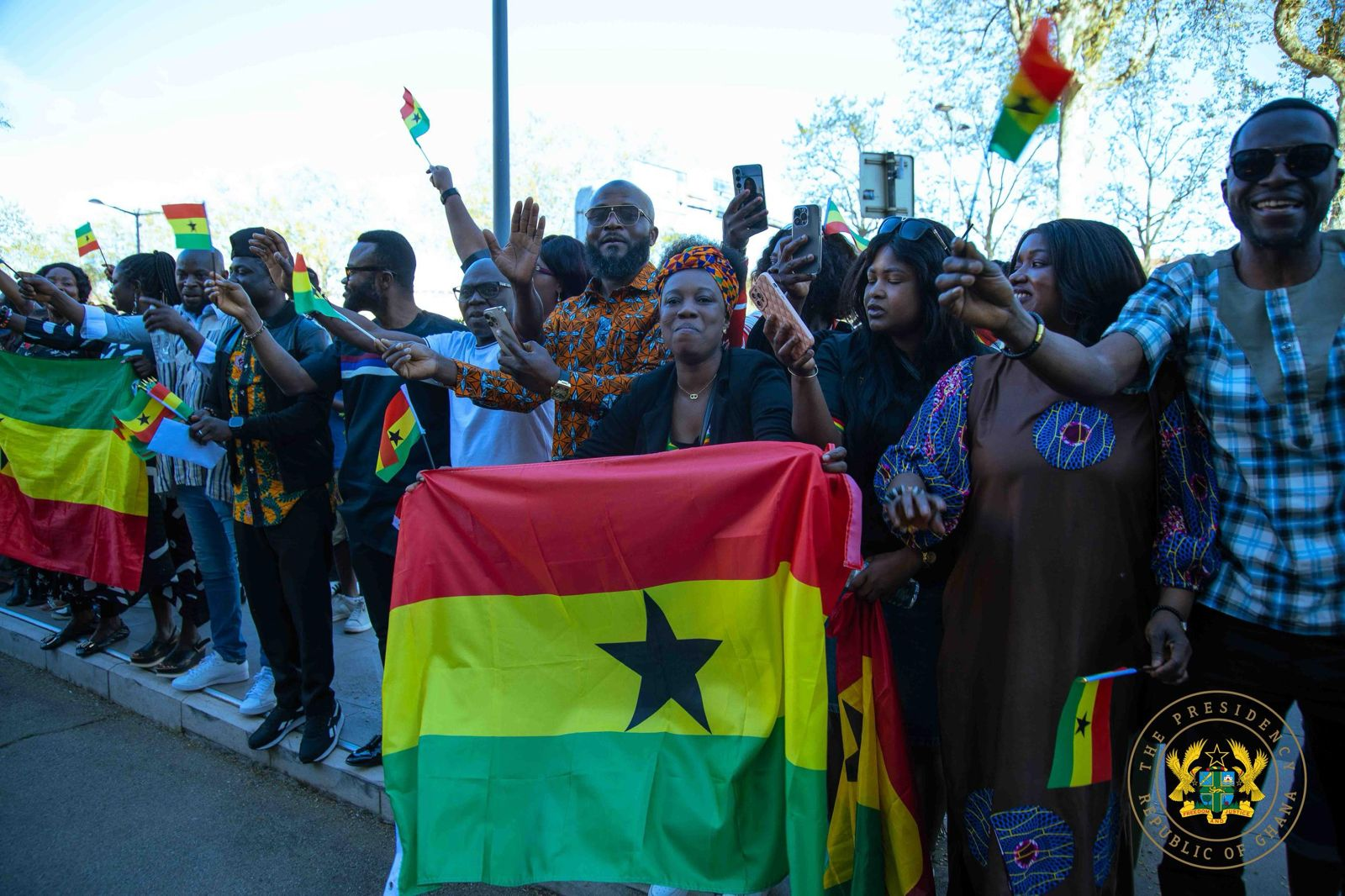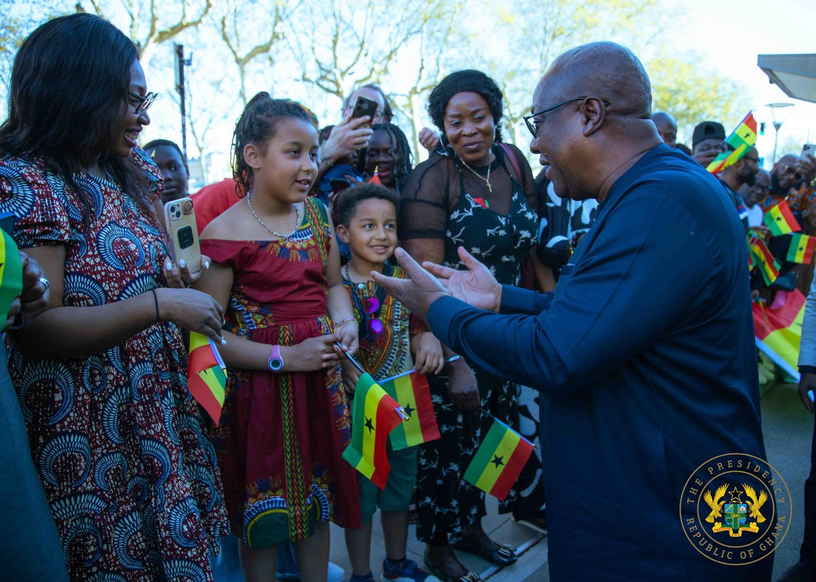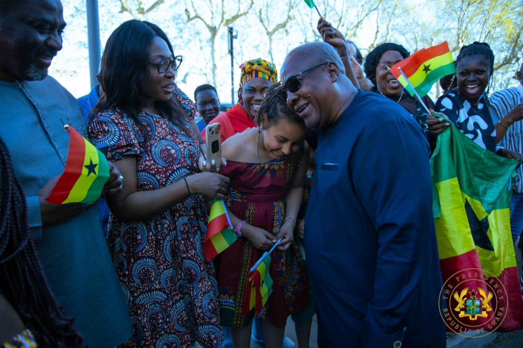 Upon arrival, President Mahama was warmly received by members of the Ghanaian community in Lyon. A number of families gathered to welcome him on Easter Monday, expressing excitement at the opportunity to meet him and interact briefly with the delegation.