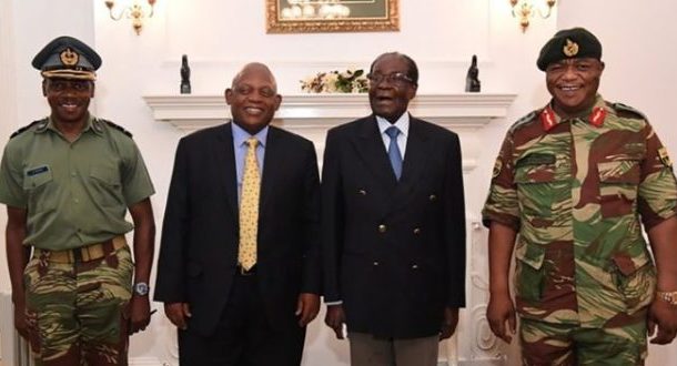 Photos in the Zimbabwe Herald earlier showed Mr Mugabe meeting army chief Gen Constantino Chiwenga and the two envoys from the Southern African Development Community (Sadc) at State House in Harare.