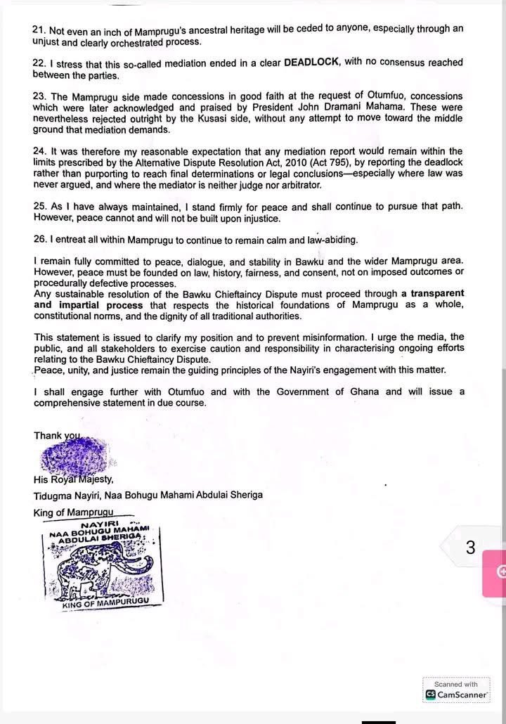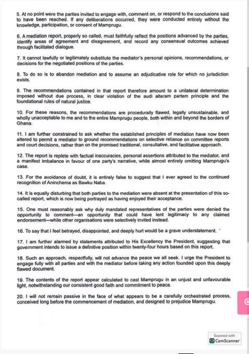 “The report is replete with personal assertions attributed to the mediator and manifestly favours one party’s narrative while almost entirely omitting Mamprugu’s case,” the statement said.