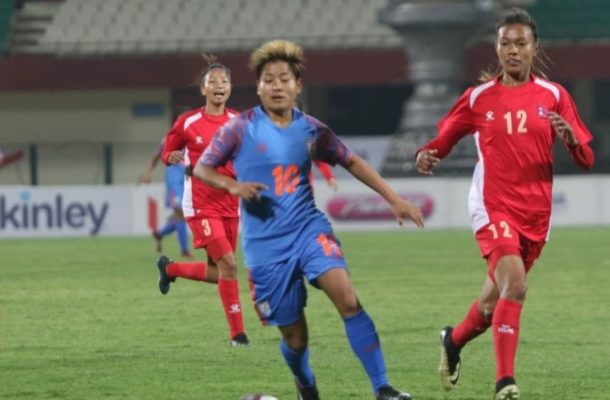 Nepal took the lead just five minutes in as Sabitra scored despite India goalkeeper Aditi Chauhan making a valiant bid to deny the ball from settling in the back of the net.