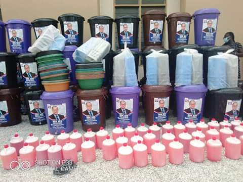 The donation includes, 200 veronica buckets with its metal stands, 200 washing bowls, 200 dustbins, 200 gallons of liquid soaps, 200 set of tissue towels, 5000 pieces of hand sanitisers, 2000 pairs of hand gloves, 1000 nose masks and 100 pieces of Coverall dresses, for supply.