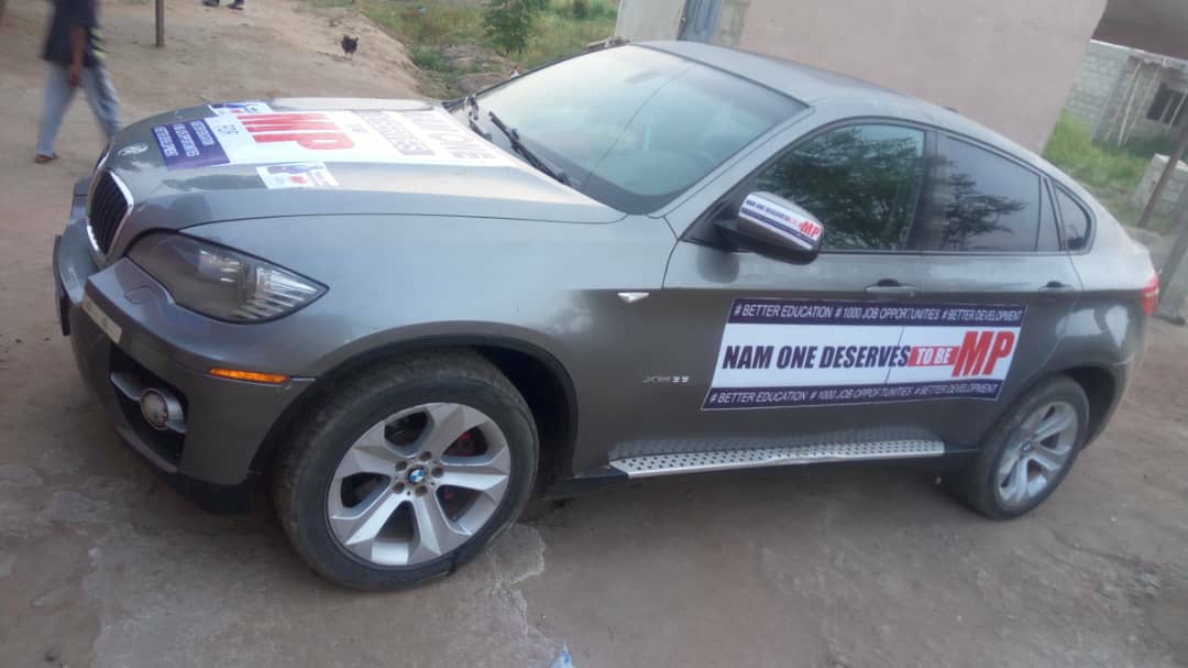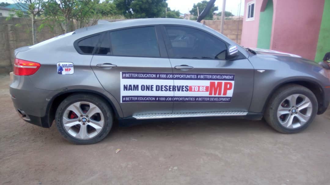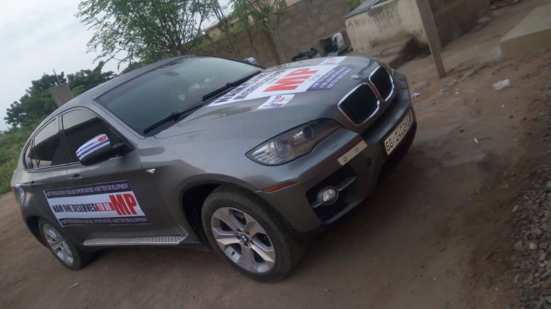 A chief of youth in Kasoa known as Hassan has already decked his SUV out in his self-made banner of Mr Mensah with words campaigning for the owner of Zylofon Media to be the MP of the area.