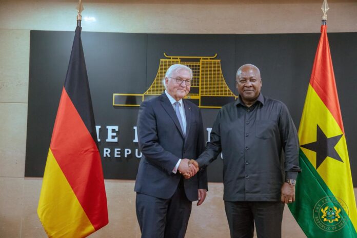 President John Dramani Mahama on Monday, November 3, 2025, officially welcomed German President Frank-Walter Steinmeier to the Jubilee House as part of the latter’s three-day state visit to Ghana.