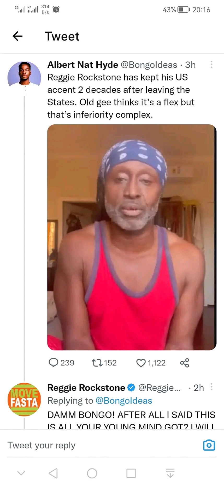 First, he called Reggie Rockstone's decision to maintain his American accent more than 20 years after moving to Ghana an example of an "inferiority complex."