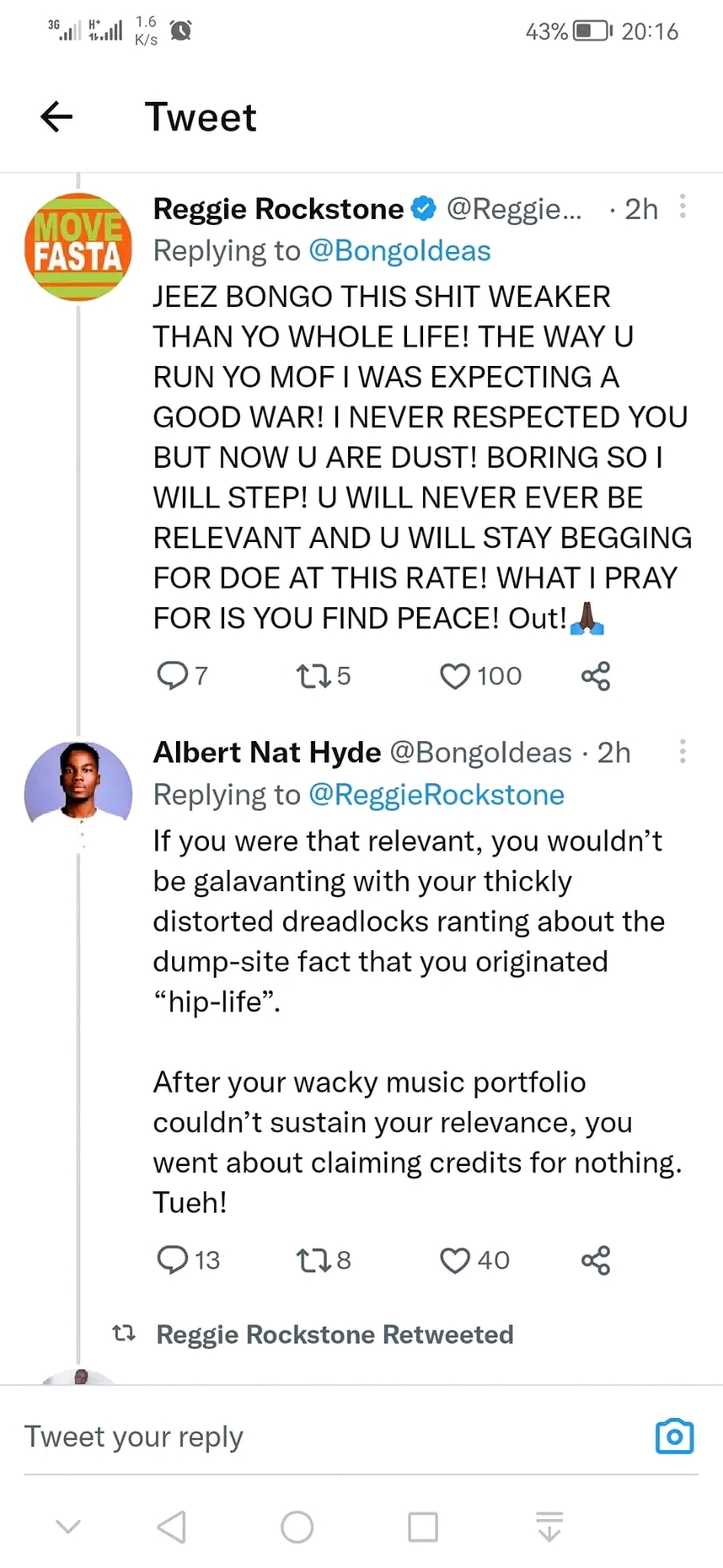 Here are some screenshots of what Bongo and Reggie said to each other on Twitter.