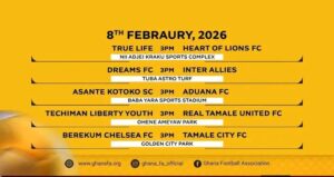 At the Nii Okai Kwaku Sports Complex in Accra, True Life FC face Heart of Lions, as the Kpando-based club look to extend their impressive run after a strong showing in the Ghana Premier League.