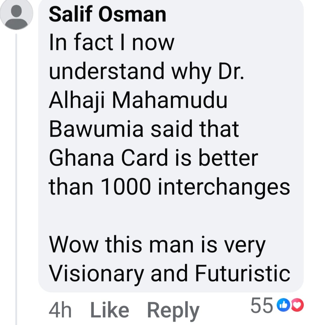 "Congratulations to Dr. Bawunia. I deed, Ghana card is important than 1000 intercahges," added another social media user by name Bkessborn Qwadwo Assuming, while another user, De-Chairman General simply referred to the development as "the Bawumia effect."