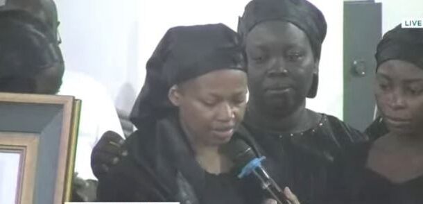 Ursula Wematu Asaghedewe, widow of the late Squadron Leader Peter Bafemi Anala, delivered a heartfelt tribute to her husband during the interdenominational state funeral held on Friday, August 15, in honour of the eight lives lost in the Sikaman helicopter crash.