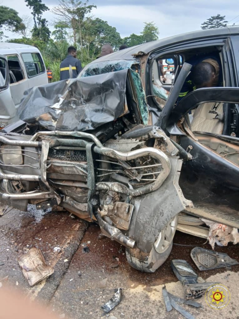 The crash involved a Toyota Hiace bus (AS-4191-25), which was travelling from Nkawkaw toward Accra, and a Honda Pilot (AS-8086-14) moving in the opposite direction. Both vehicles were left severely damaged and stuck in the middle of the highway after the impact.