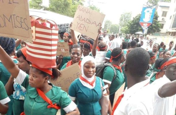 The nurses on Tuesday started their protest from the Independence Square through Ridge to the Health Ministry to present a petition.